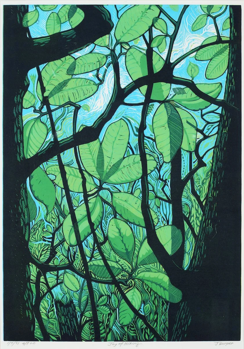 Jennifer Harper is passionate about the the environment and her family and takes most of her visual cues from the natural world. The content of her work is very flexible. While one print might be realistic, the next might be abstract. Her thinking “is in a constant state of flux and the ideas for a print have to accommodate the thought of the day”.