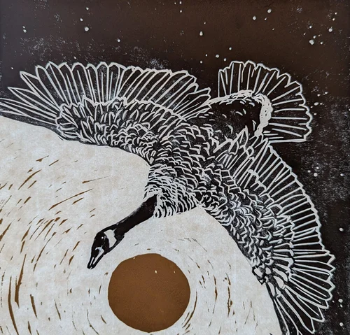 Marina Burgner developed her love of printmaking while taking classes at Seminole State College. Currently an art major at Stetson University in DeLand, Florida, she continues to create relief prints and has added sculpture and pottery to her artistic endeavors. Notably She has won numerous awards for printmaking and sculpture, including two Best in Show prizes at the Seminole State College annual student show, 2022 and 2023. With a strong interest in native Florida wildlife, her work often depicts animals in their habits and their struggle for survival .