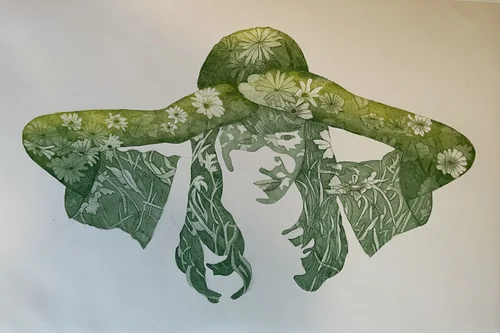 Megan Carroll is a founding member of the Seminole County Printmakers. She studied art and printmaking under Larry Vienneau at Seminole State College. Her work is magical, mystical, and peculiar with recurring themes of birds, flowers and symbols that can be found hand-printed on fabric as well as paper.
